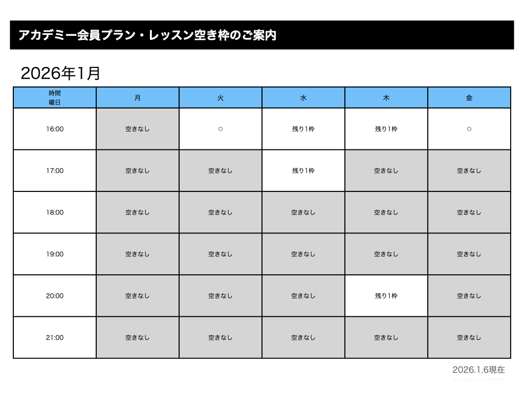 ご希望の曜日・時間帯に空きが出ましたらご連絡させていただきます。